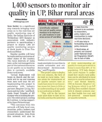 The project aims to monitor the air quality across Indian states for better air quality policies. In its first phase, the sensor-based air quality monitoring network will be deployed across Uttar Pradesh and Bihar, two of India's most polluted and populated states that lie in the Indo-gangetic plains (IGP).